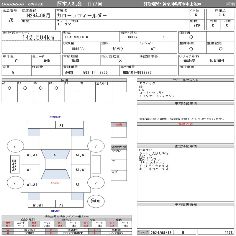TOYOTA COROLLA FIELDER - лот 76