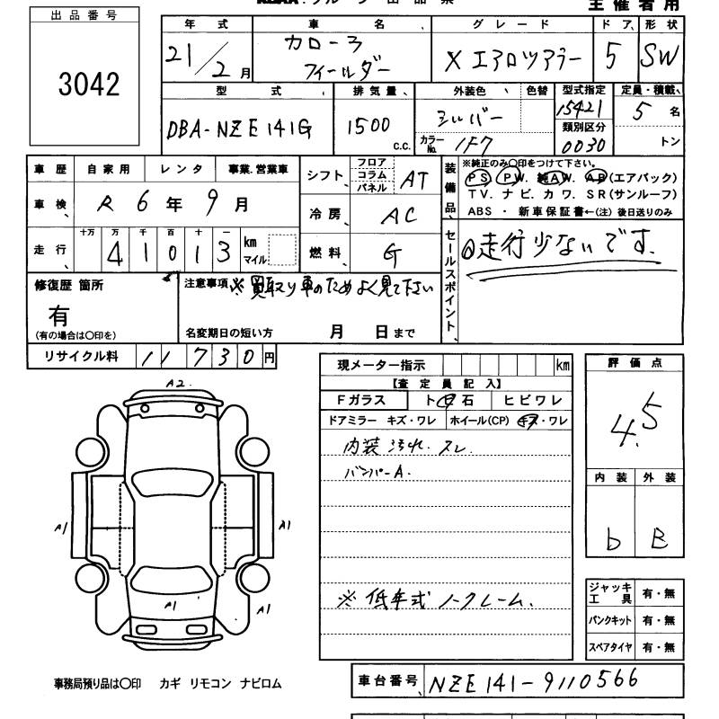TOYOTA COROLLA FIELDER - лот 3042