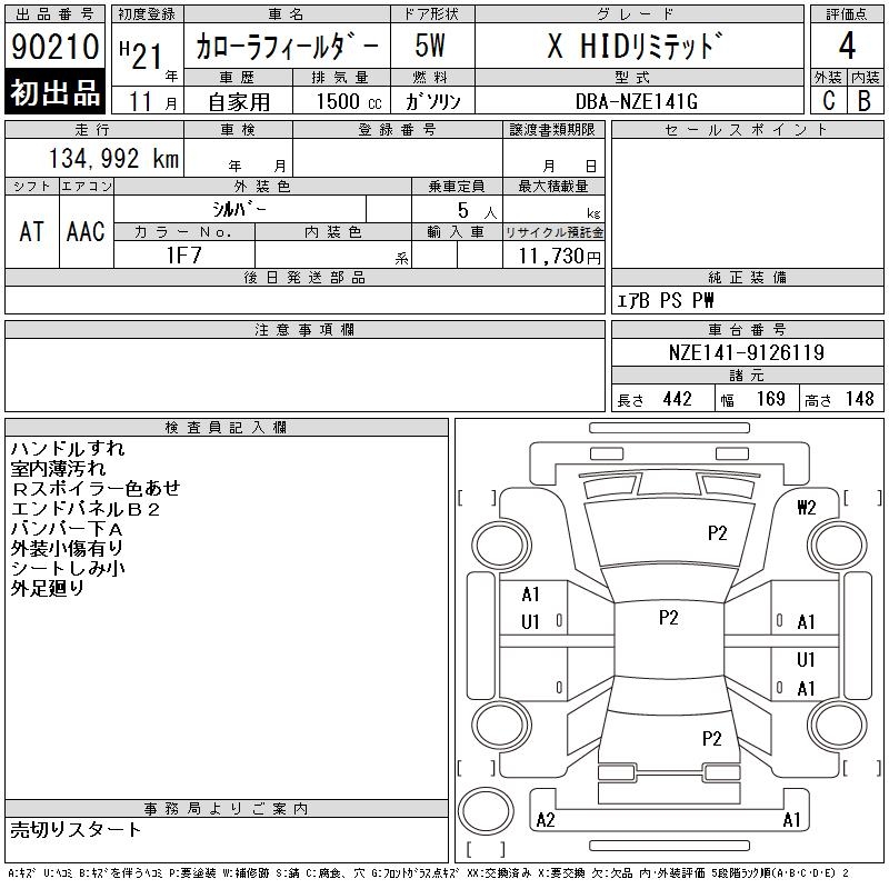 TOYOTA COROLLA FIELDER - лот 90210