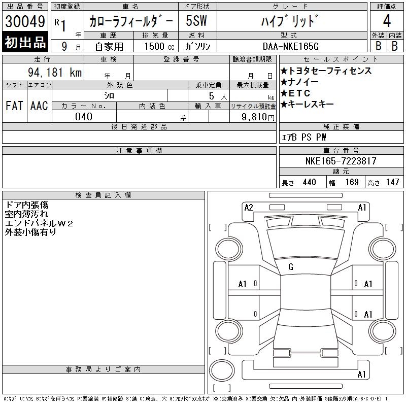 TOYOTA COROLLA FIELDER - лот 30049