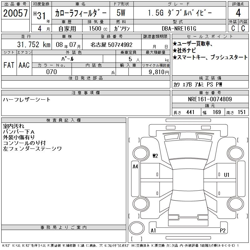 TOYOTA COROLLA FIELDER - лот 20057