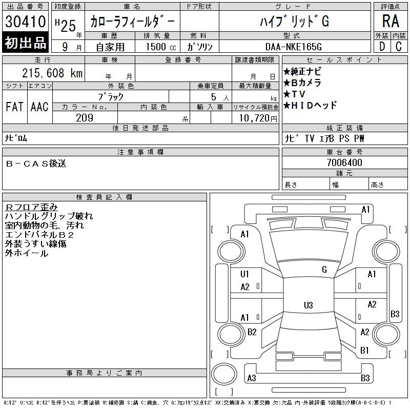 TOYOTA COROLLA FIELDER - лот 30410