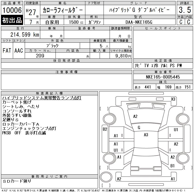 TOYOTA COROLLA FIELDER - лот 10006
