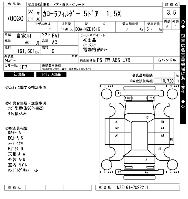 TOYOTA COROLLA FIELDER - лот 70030
