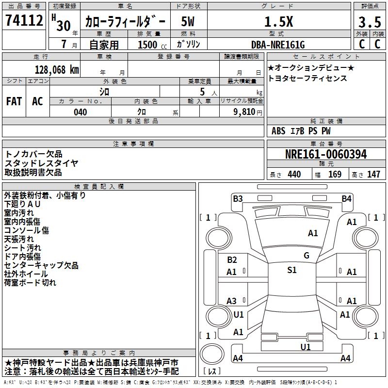 TOYOTA COROLLA FIELDER - лот 74112