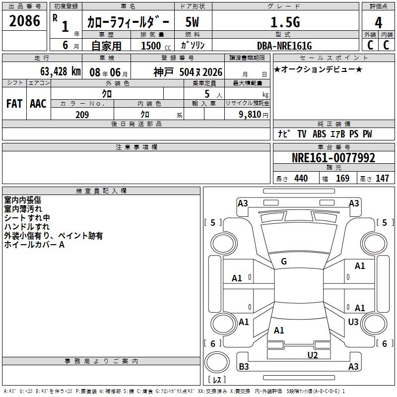 TOYOTA COROLLA FIELDER - лот 2086