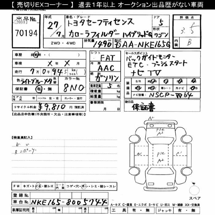 TOYOTA COROLLA FIELDER - лот 70194
