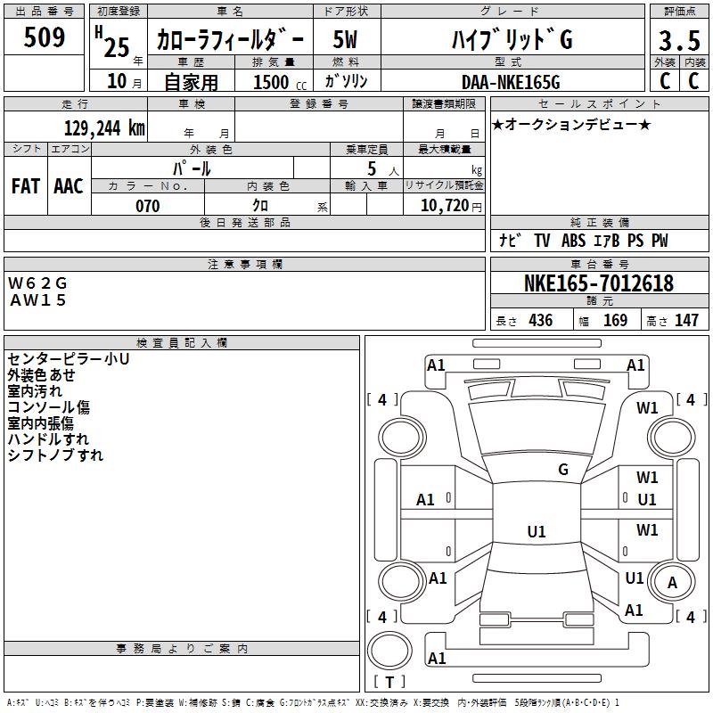 TOYOTA COROLLA FIELDER - лот 509