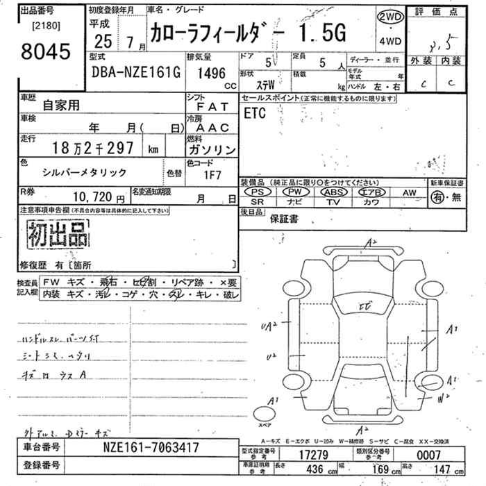 TOYOTA COROLLA FIELDER - лот 8045