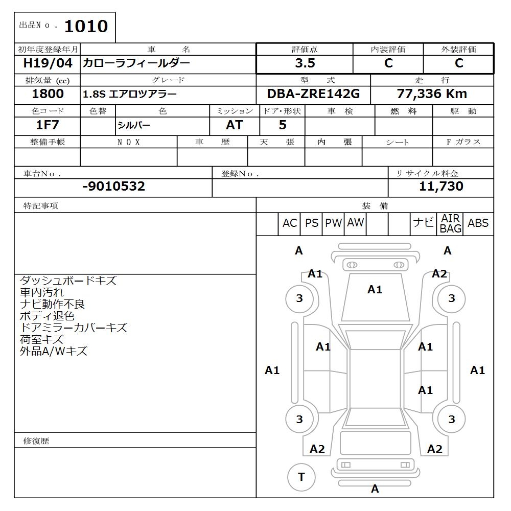 TOYOTA COROLLA FIELDER - лот 1010