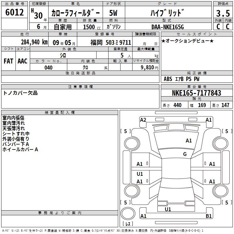 TOYOTA COROLLA FIELDER - лот 6012