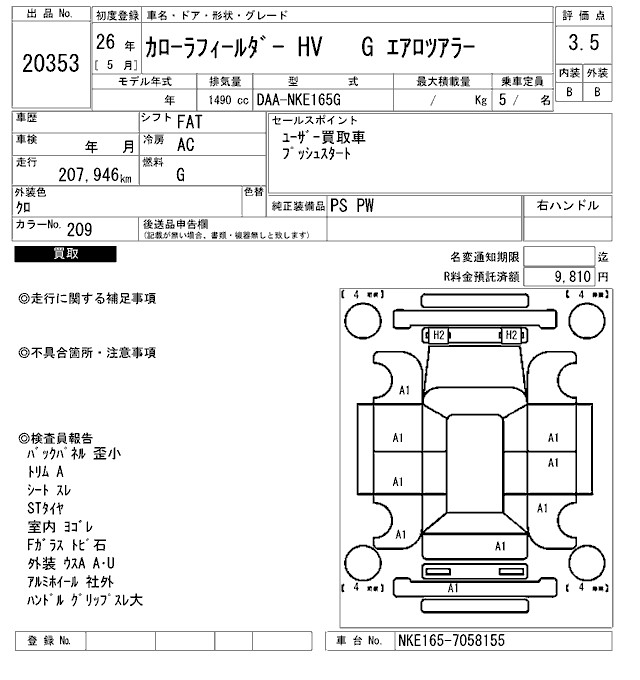 TOYOTA COROLLA FIELDER - лот 20353