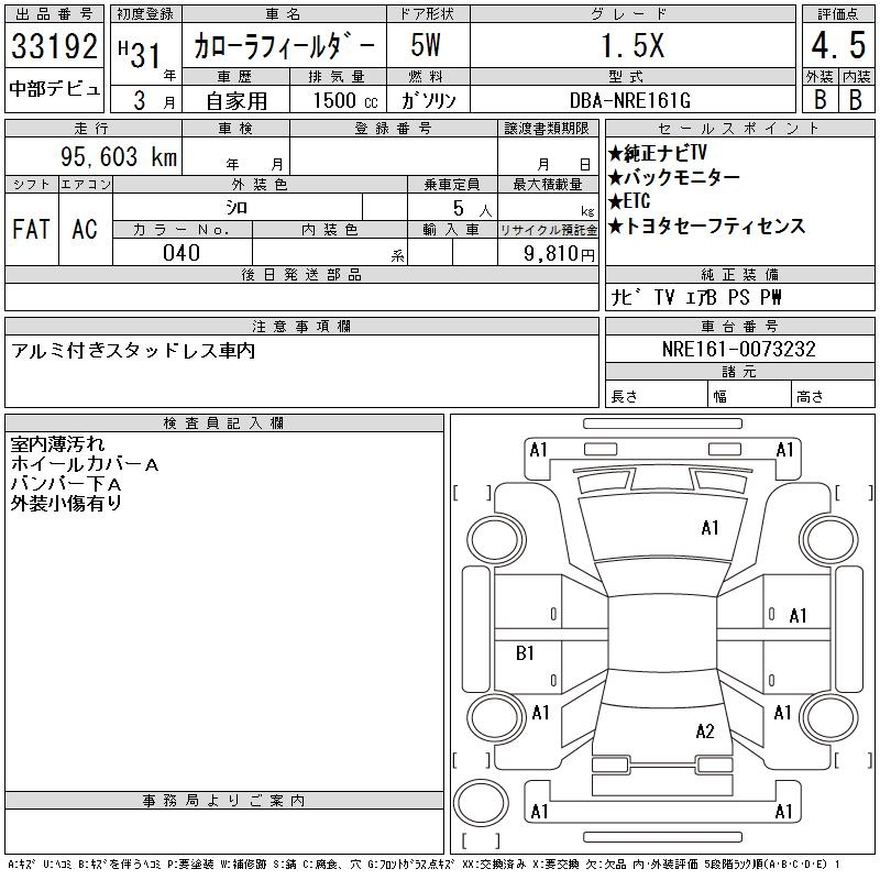TOYOTA COROLLA FIELDER - лот 33192