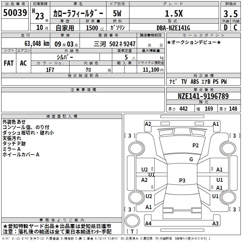 TOYOTA COROLLA FIELDER - лот 50039