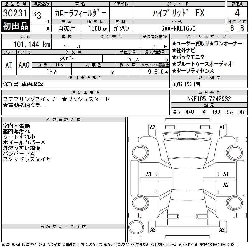 TOYOTA COROLLA FIELDER - лот 30231