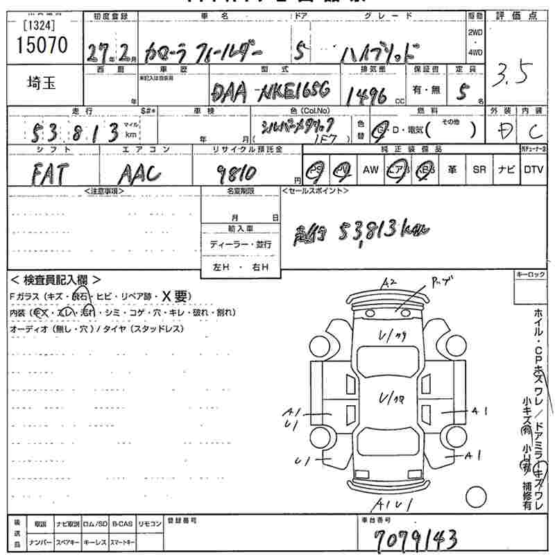 TOYOTA COROLLA FIELDER - лот 15070
