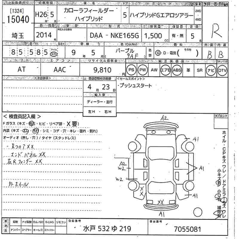 TOYOTA COROLLA FIELDER - лот 15040