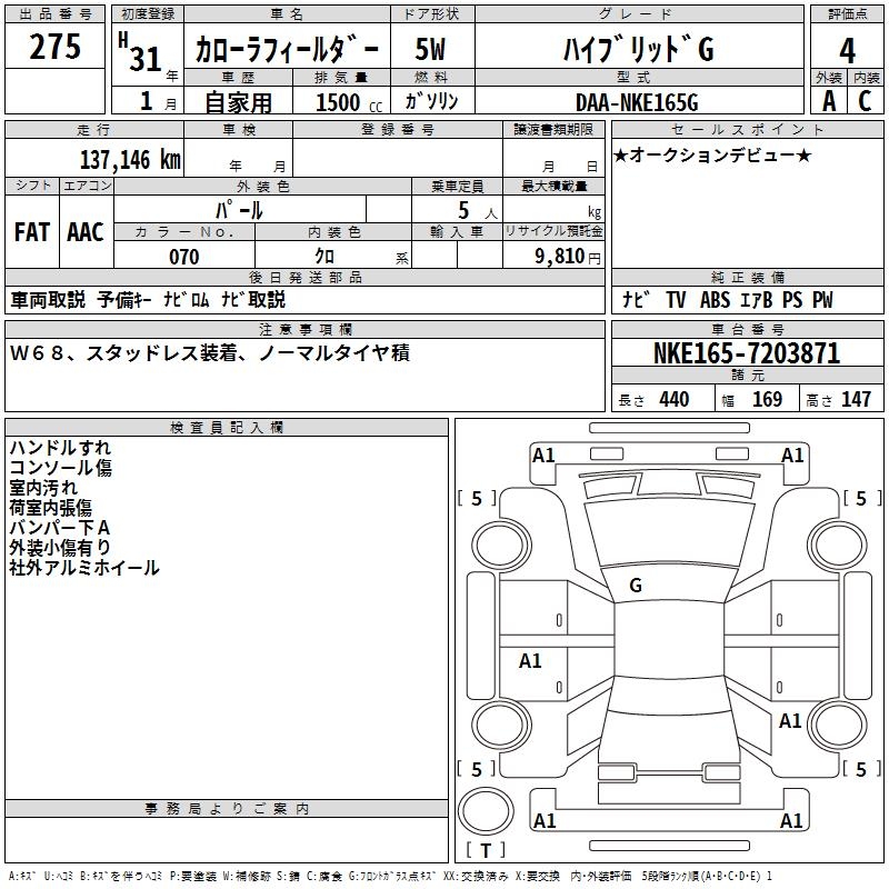TOYOTA COROLLA FIELDER - лот 275