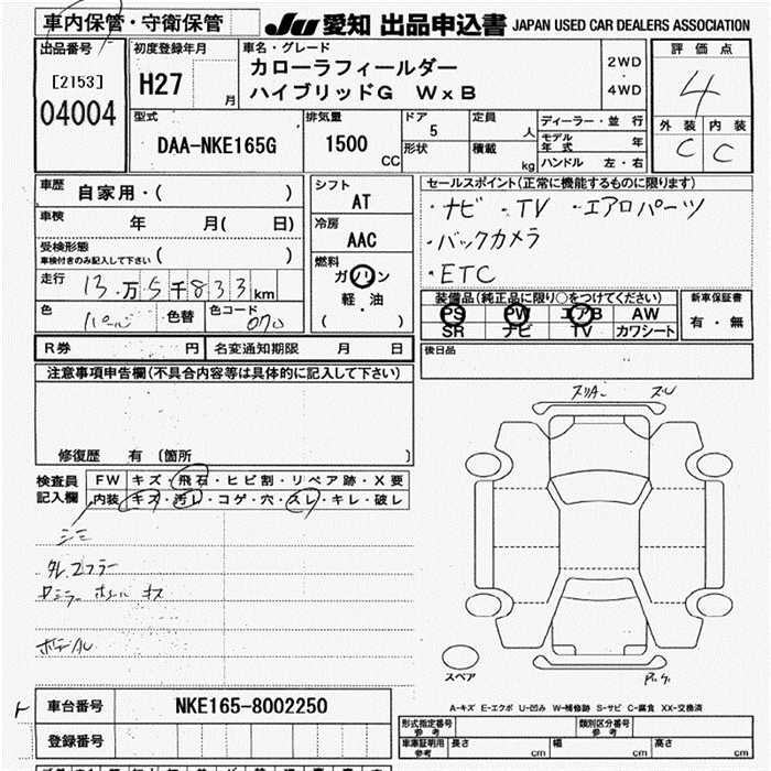 TOYOTA COROLLA FIELDER - лот 4004
