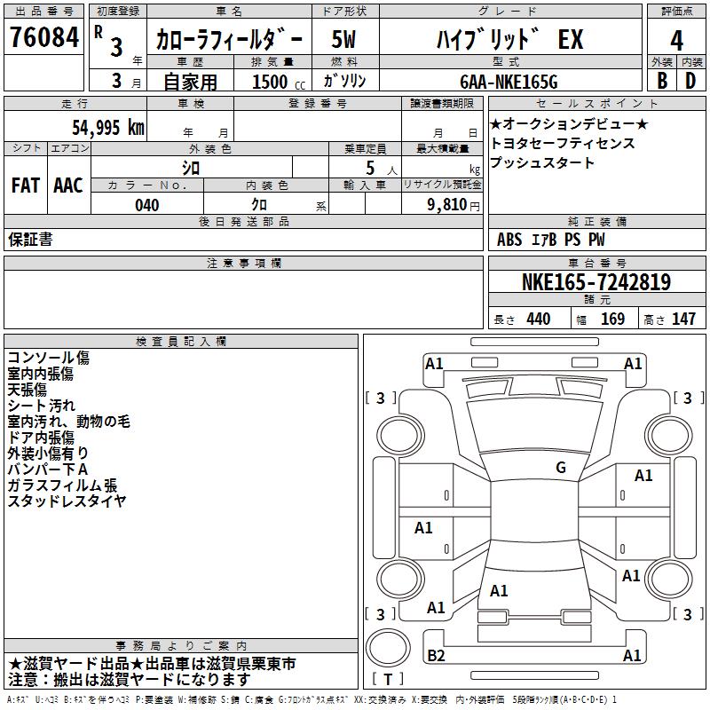 TOYOTA COROLLA FIELDER - лот 76084