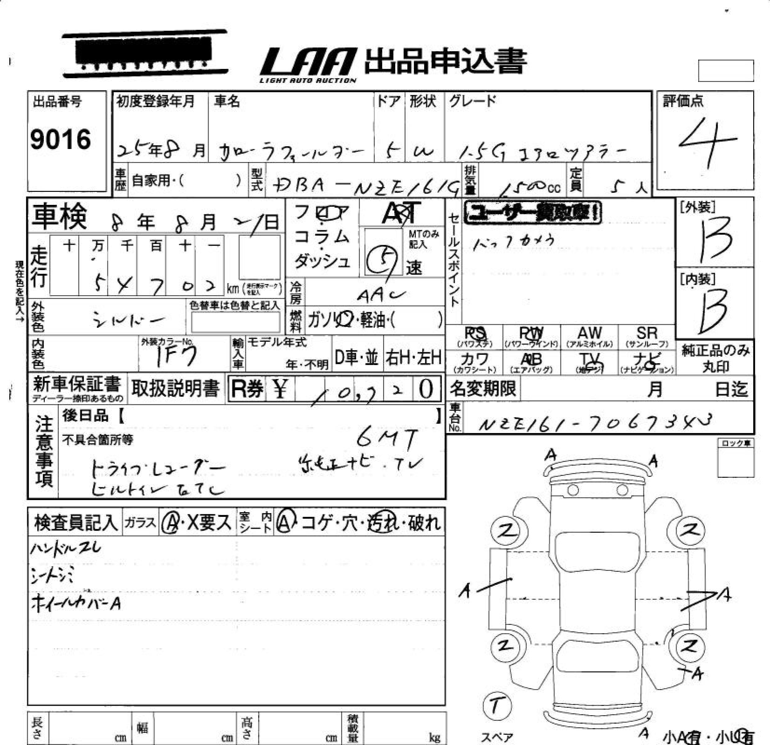 TOYOTA COROLLA FIELDER - лот 9016