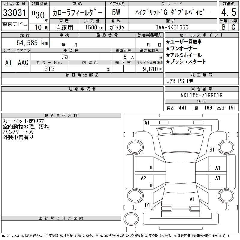 TOYOTA COROLLA FIELDER - лот 33031
