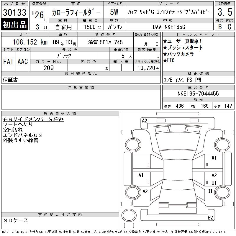 TOYOTA COROLLA FIELDER - лот 30133