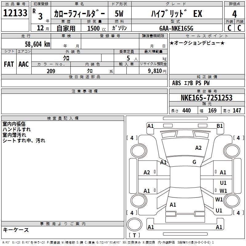 TOYOTA COROLLA FIELDER - лот 12133