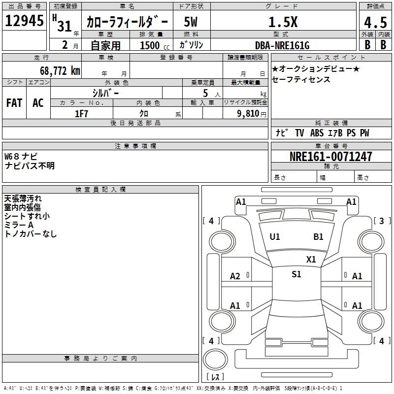 TOYOTA COROLLA FIELDER - лот 12945