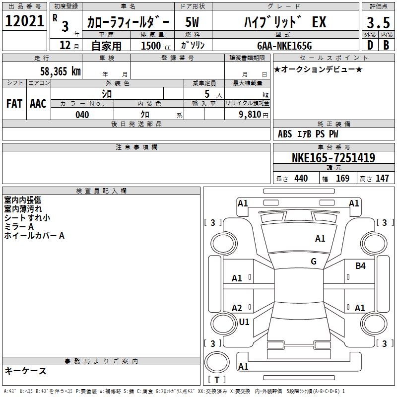 TOYOTA COROLLA FIELDER - лот 12021