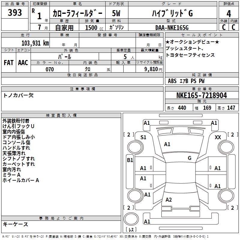 TOYOTA COROLLA FIELDER - лот 393