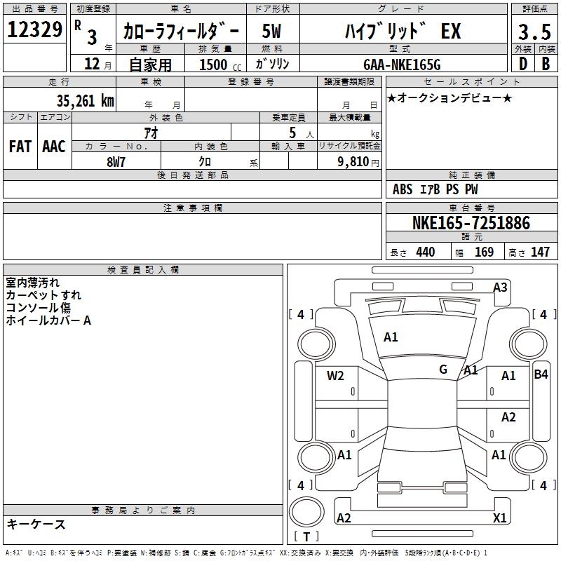 TOYOTA COROLLA FIELDER - лот 12329