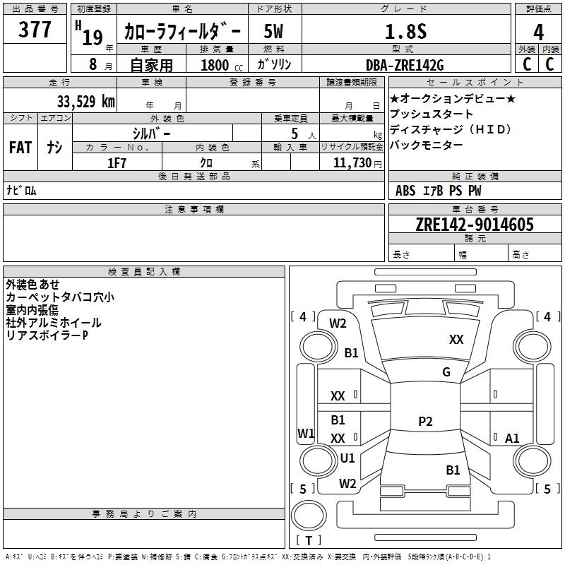 TOYOTA COROLLA FIELDER - лот 377