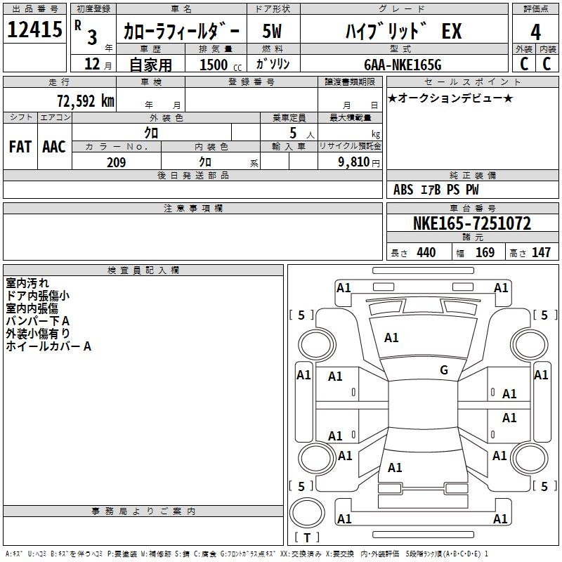 TOYOTA COROLLA FIELDER - лот 12415