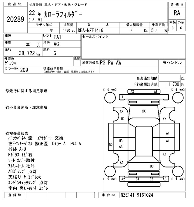 TOYOTA COROLLA FIELDER - лот 20289