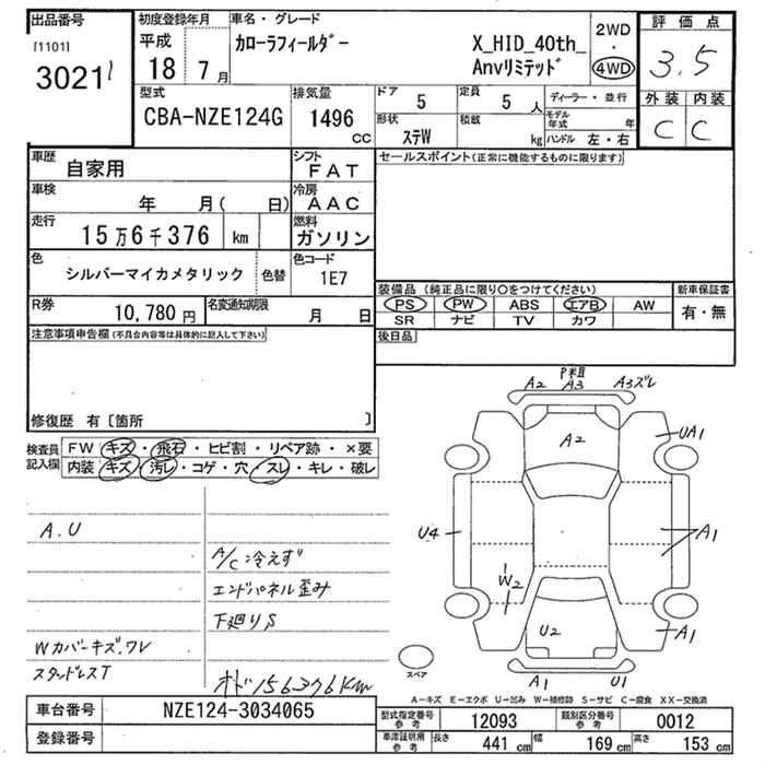 TOYOTA COROLLA FIELDER - лот 3021