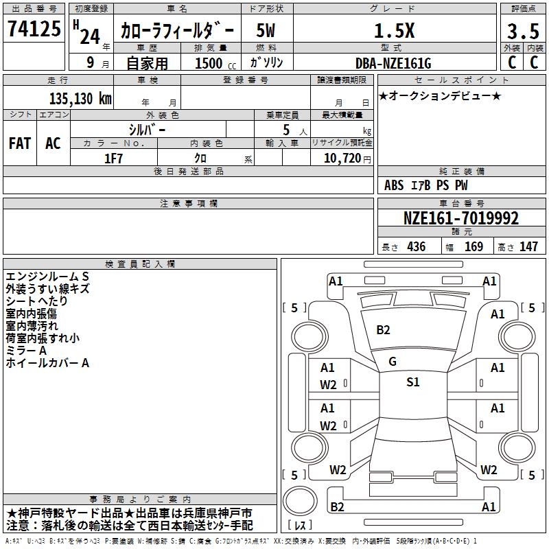 TOYOTA COROLLA FIELDER - лот 74125