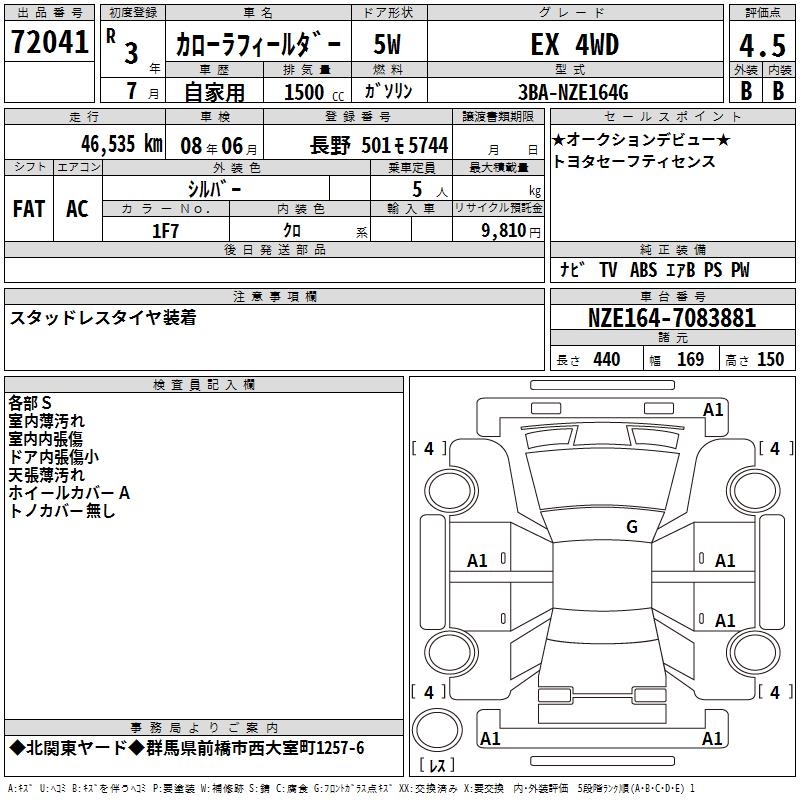 TOYOTA COROLLA FIELDER - лот 72041