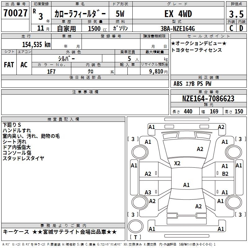 TOYOTA COROLLA FIELDER - лот 70027