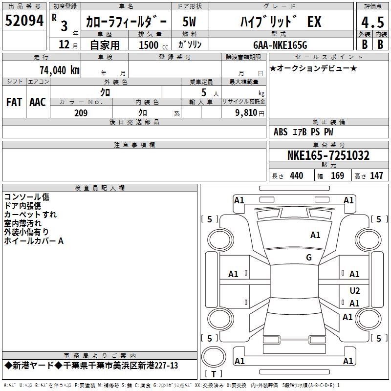 TOYOTA COROLLA FIELDER - лот 52094