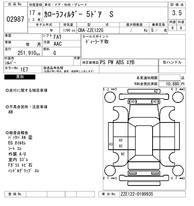 TOYOTA COROLLA FIELDER - лот 2987