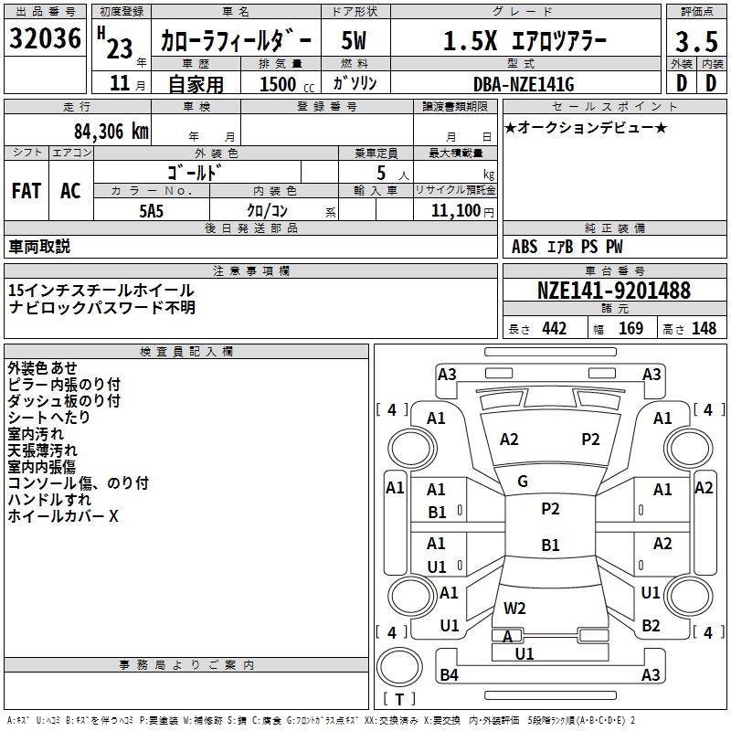 TOYOTA COROLLA FIELDER - лот 32036