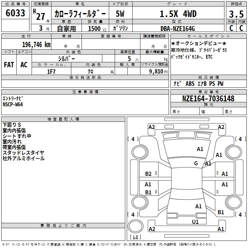 TOYOTA COROLLA FIELDER - лот 6033