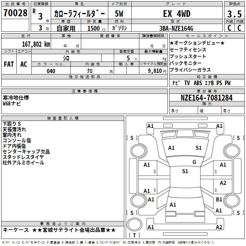 TOYOTA COROLLA FIELDER - лот 70028