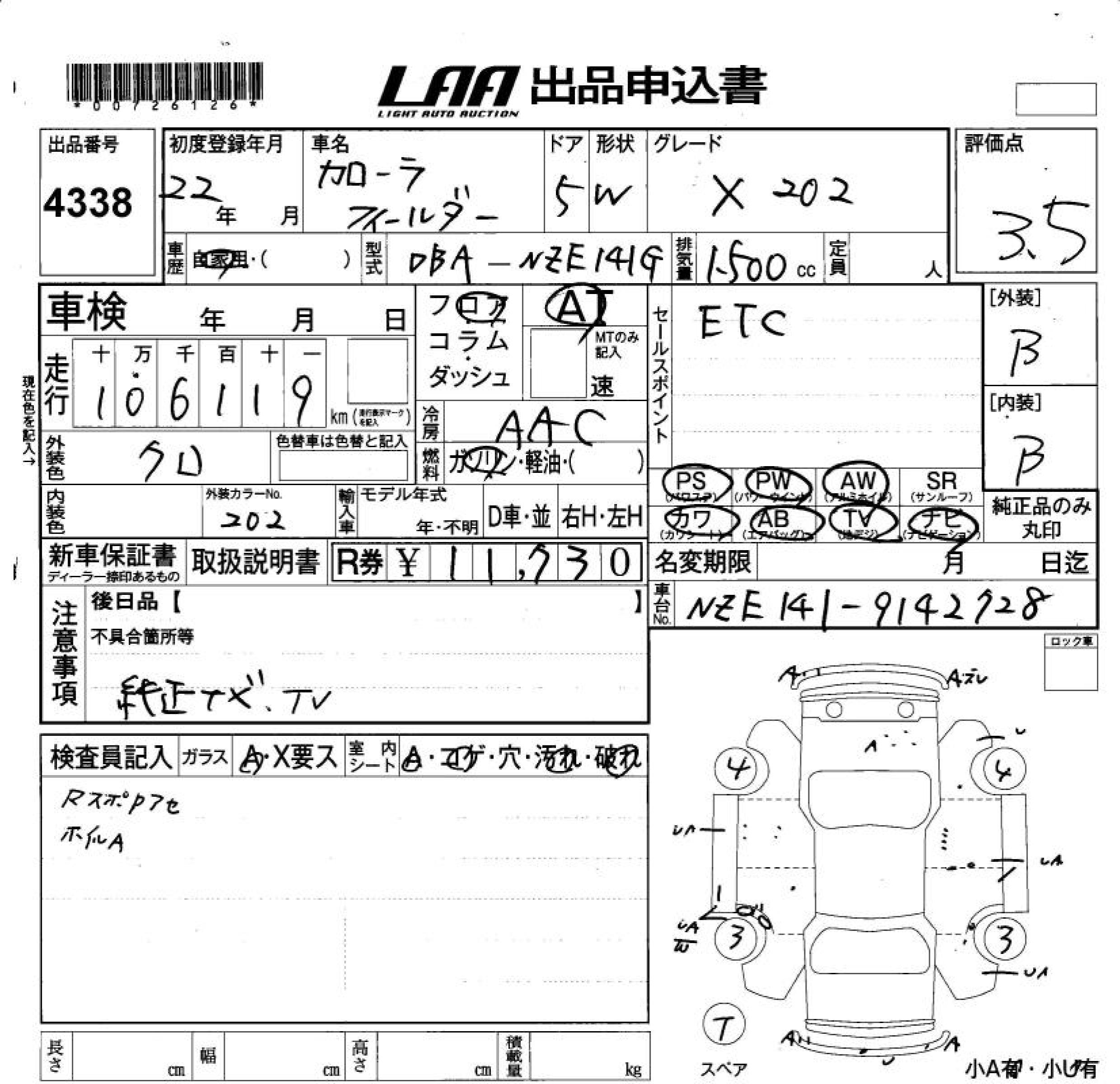 TOYOTA COROLLA FIELDER - лот 4338