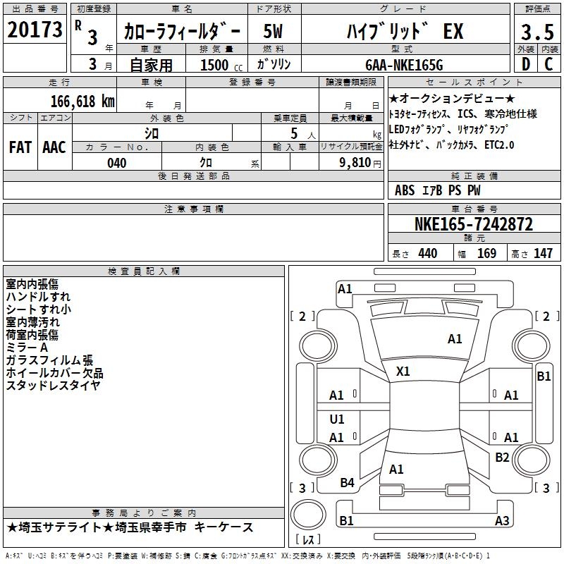 TOYOTA COROLLA FIELDER - лот 20173