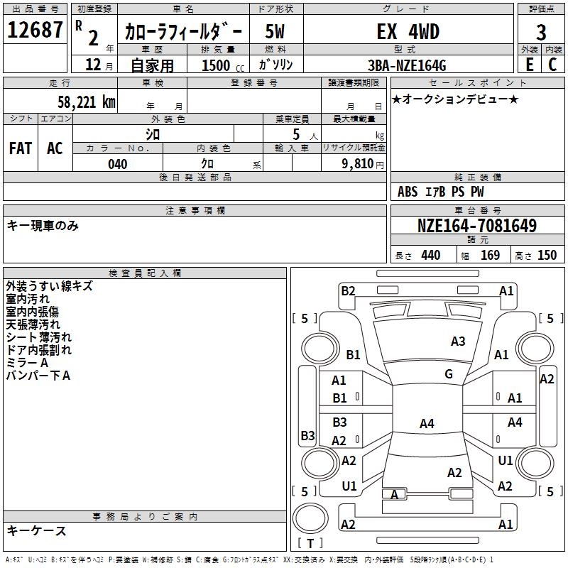 TOYOTA COROLLA FIELDER - лот 12687