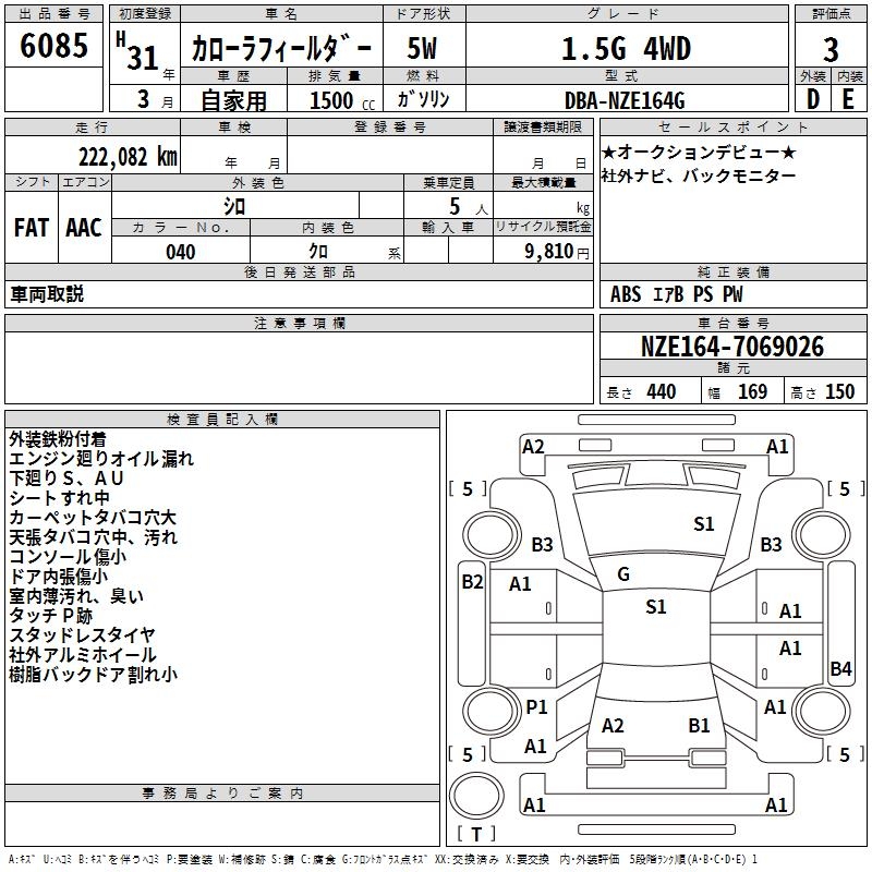 TOYOTA COROLLA FIELDER - лот 6085