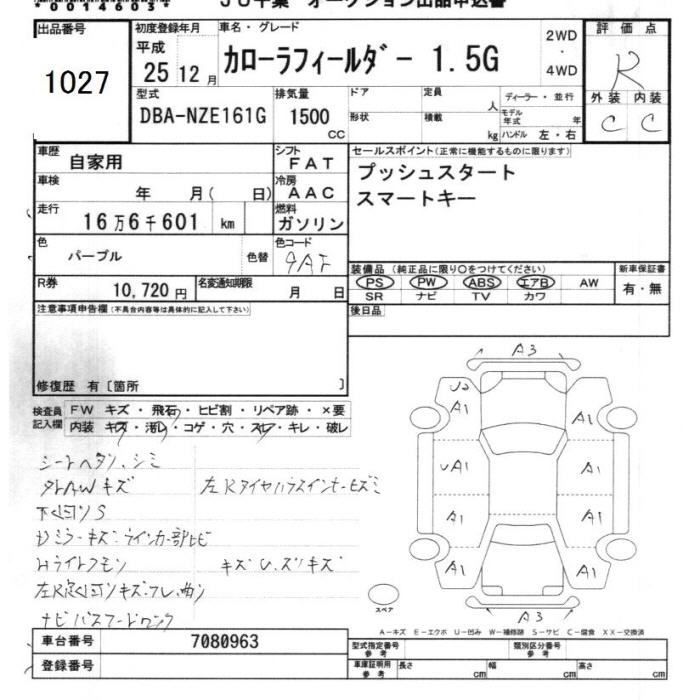 TOYOTA COROLLA FIELDER - лот 1027