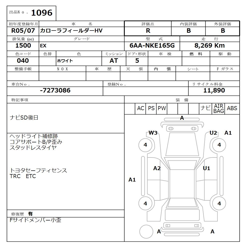 TOYOTA COROLLA FIELDER - лот 1096